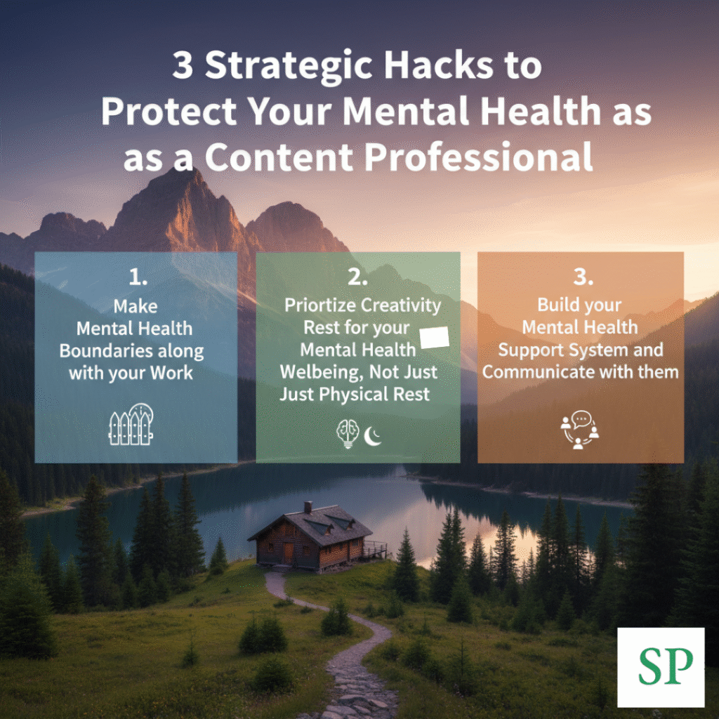 As a writer, you are human, too, and protecting your mental health should be your priority. But this doesn’t mean sitting, relaxing, and leaving work. In this blog, I mention 3 strategic hacks to protect your mental health as a Content Professional.