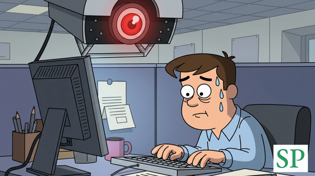 Several companies track real-time updates from their employees, so they use a timer and webcam surveillance to check whether every employee is at the desk working for their company. This means no privacy, freedom, manipulation, or strictness. Webcam surveillance not only removes the boundary between personal and professional life but also initiates psychological stress because even after hours, employees tend to imagine that they are still under surveillance, like the Big Boss.